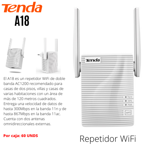 REPETIDOR WIFI DOBLE BANDA AC1200 TENDA A18